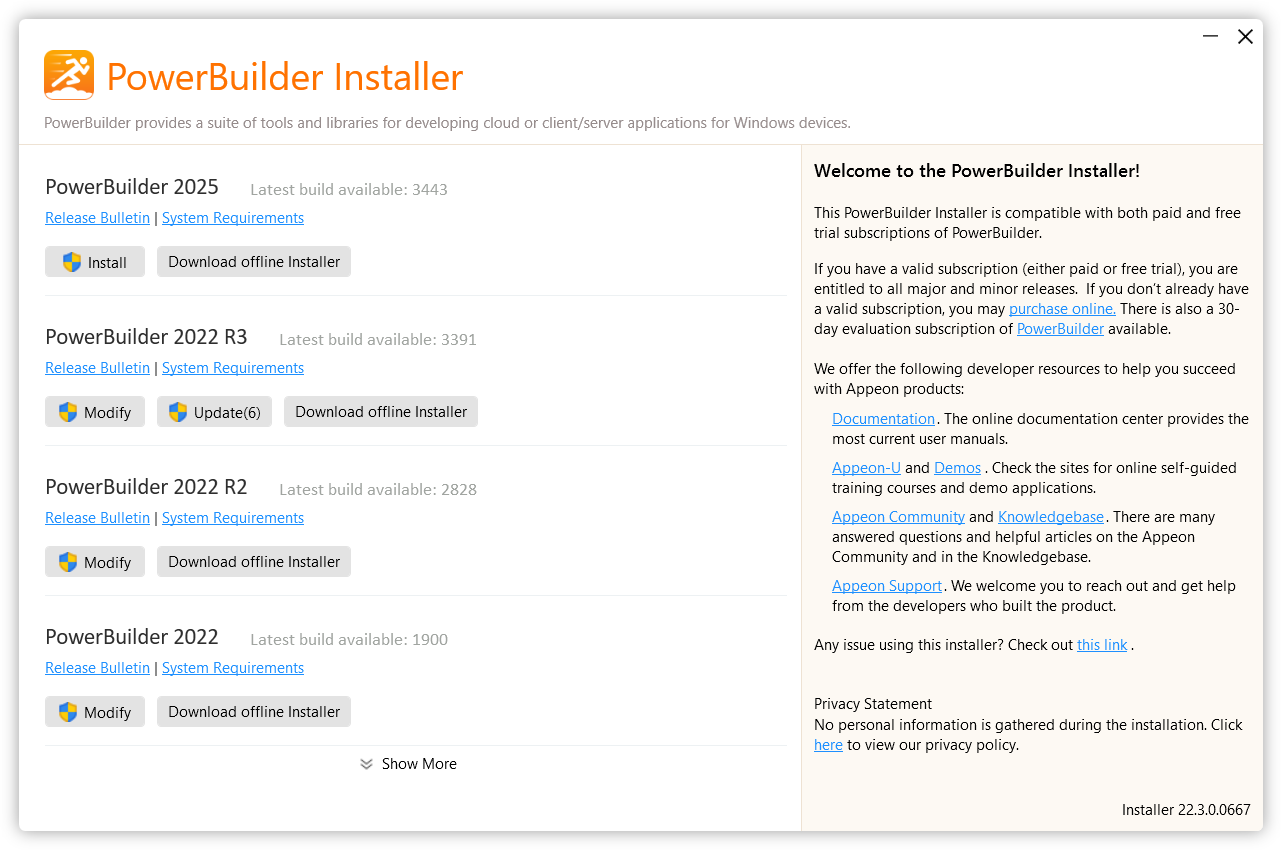 Step 1: Click Install/Update or Download offline Installer under PowerBuilder [version].