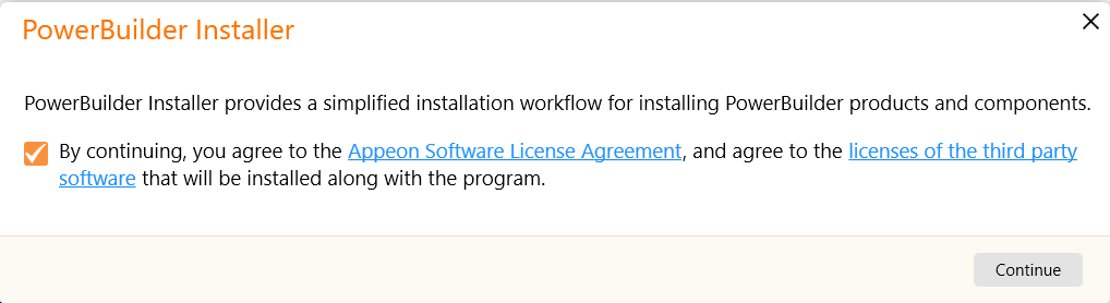 Double click PowerBuilderInstaller_bootstrapper.exe to start the PowerBuilder Installer.