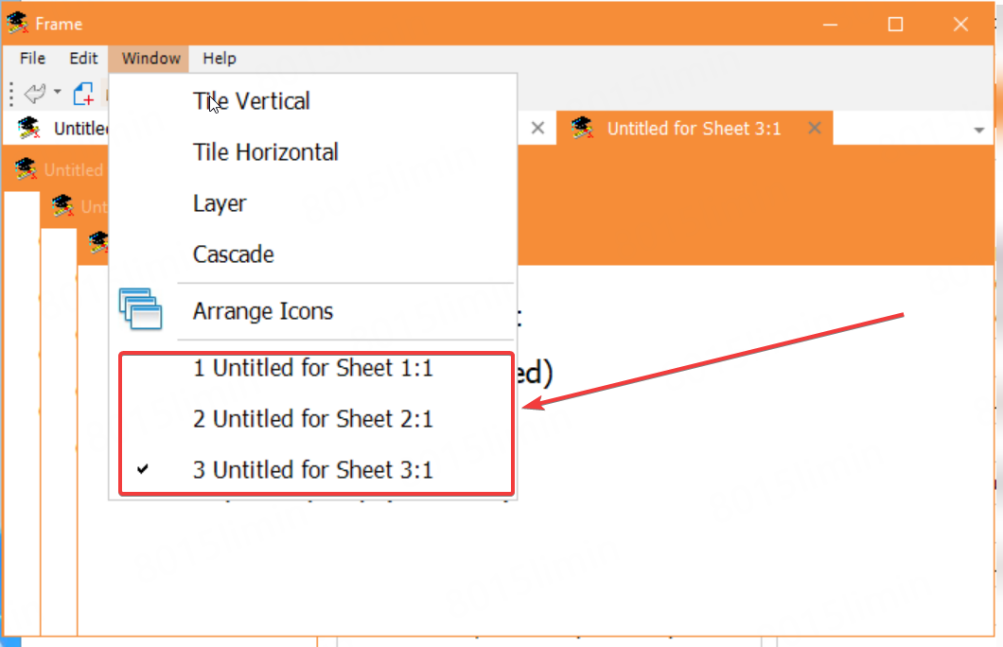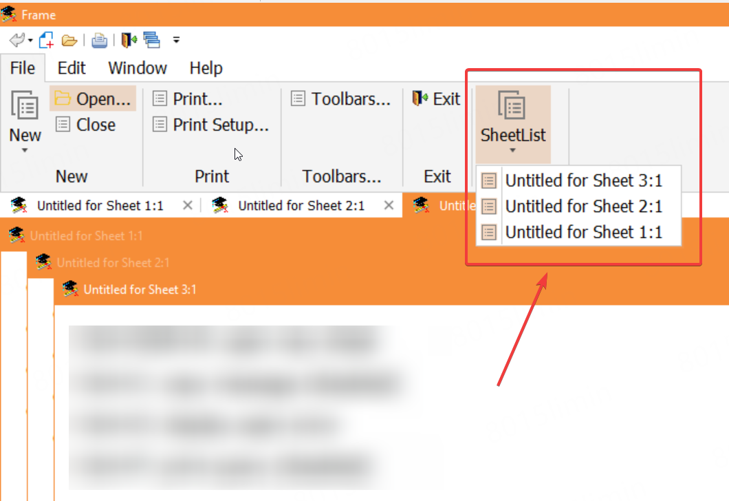 When SheetListVisible is TRUE and a sheet window is opened, the sheet list is shown as follows: