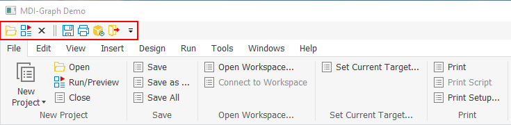During initialization, the visibility of the QuickAccessToolbar is determined by the ToolbarVisible property. When the initial value of ToolbarVisible is true, the QuickAccessToolbar is visible, when the initial value of ToolbarVisible is false, the QuickAccessToolbar is invisible. If the menu does not have a toolbar, the QuickAccessToolbar will not be displayed, even if ToolbarVisible and/or ShowQuickAccessToolbar are set to true.