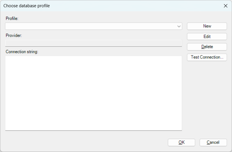 Step 2: In the Choose database profile window, click New to create a new connection.