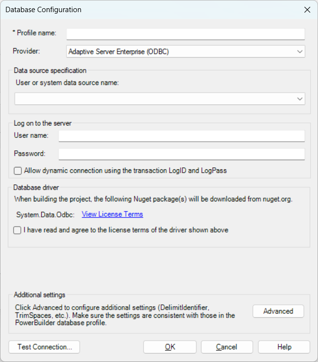 Step 4: After creating the database profile, return to the Choose database profile window and select this profile.