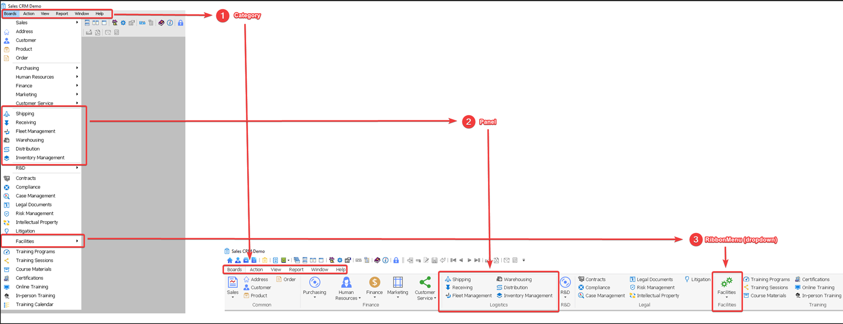 The functions, events, and properties of the original menu will still be supported after the menu is displayed as a ribbon bar. For more information, refer to Support for menu functions, events, and properties.