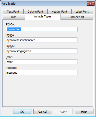 For example, if you defined a user object named mytrans that is inherited from the built-in Transaction object, type mytrans in the box corresponding to SQLCA.