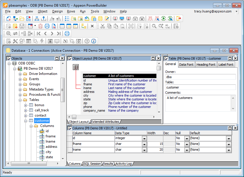 Like the other PowerBuilder painters, the Database painter contains a menu bar, customizable PainterBars, and several views. All database-related tasks that you can do in PowerBuilder can be done in the Database painter.