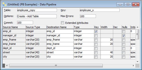 When you pipe data, you can specify that you want to pipe the extended attributes associated with the columns you are piping. You do this by selecting the Extended Attributes check box in the Data Pipeline painter workspace: