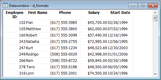 If a column displays phone numbers, salaries, or dates, you can specify the format appropriate to the data.