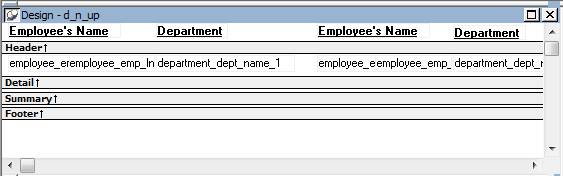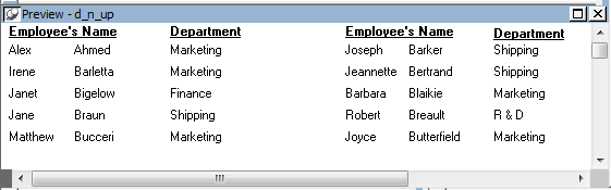 The N-Up style presents two or more rows of data next to each other. It is similar to the Label style in that you can have information from several rows in the database across the page. However, the information is not meant to be printed on labels. The N-Up presentation style is useful if you have periodic data; you can set it up so that each period repeats in a row.