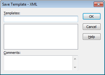 To save a new template, select Save from the pop-up menu in the Export/Import Template view, and give the template a name and optionally a comment that identifies its use.