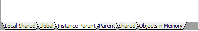 View the names and memory locations of instances of each memory object and property values of each instance. This view is not used if you are debugging a remote component. |