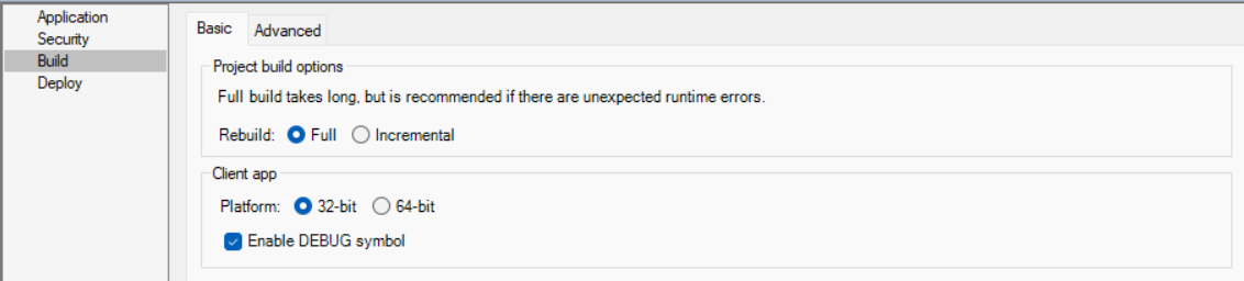 Select whether to deploy/package the runtime files. The runtime files compatible with the selected platform (32-bit or 64-bit) of the client app will be deployed or packaged. |