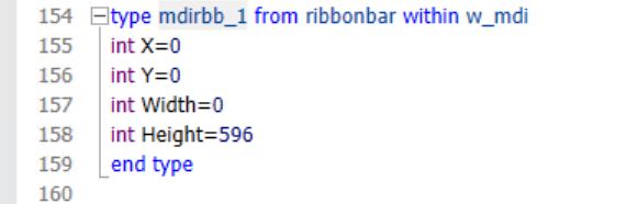 (Note that the mdirbb_1 object inherits from the RibbonBar control, therefore it has the properties, functions and events of the RibbonBar control. But it cannot have user-defined events or functions.)