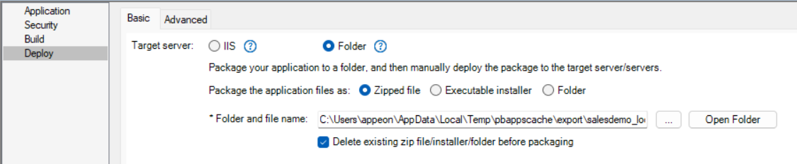 Click the PowerClient project in the System Tree and then select the Deploy page > Basic tab.