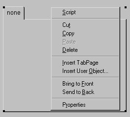 With the mouse pointer on one of the tabs, double-click the Tab control, or display the pop-up menu and select Script.