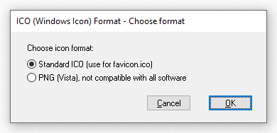 To find out the format of an existing ICO file, you can open the file and view its format (for example, in Visual Studio).