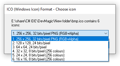 Icon files in PNG format are unsupported. Please specify an icon file in BMP format. To save an icon file in BMP format, you should choose the "Standard ICO" format instead of the "PNG" format when you create and save the ICO file.