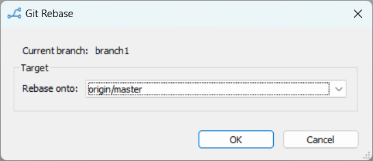 branch1, andmasterhas received new updates; you now want to rebase your work on top of the latestorigin/master. You can configure the dialog as below: