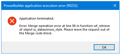 If the DataWindow or embedded SQLs does not support the merge labels, the following error will occur.