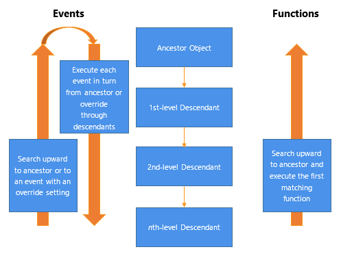 PowerBuilder events in descendant objects are, by default, extensions of ancestor events. PowerBuilder searches for events in the object's ancestor hierarchy until it gets to the top ancestor or finds an event that overrides its ancestor. Then it begins executing the events, from the ancestor event down to the descendant event.
