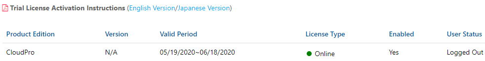 You can view the license information and status in the User Center. And once you logged in with the trial license, a Logout option will be displayed here, so that manual logout is available whenever needed.