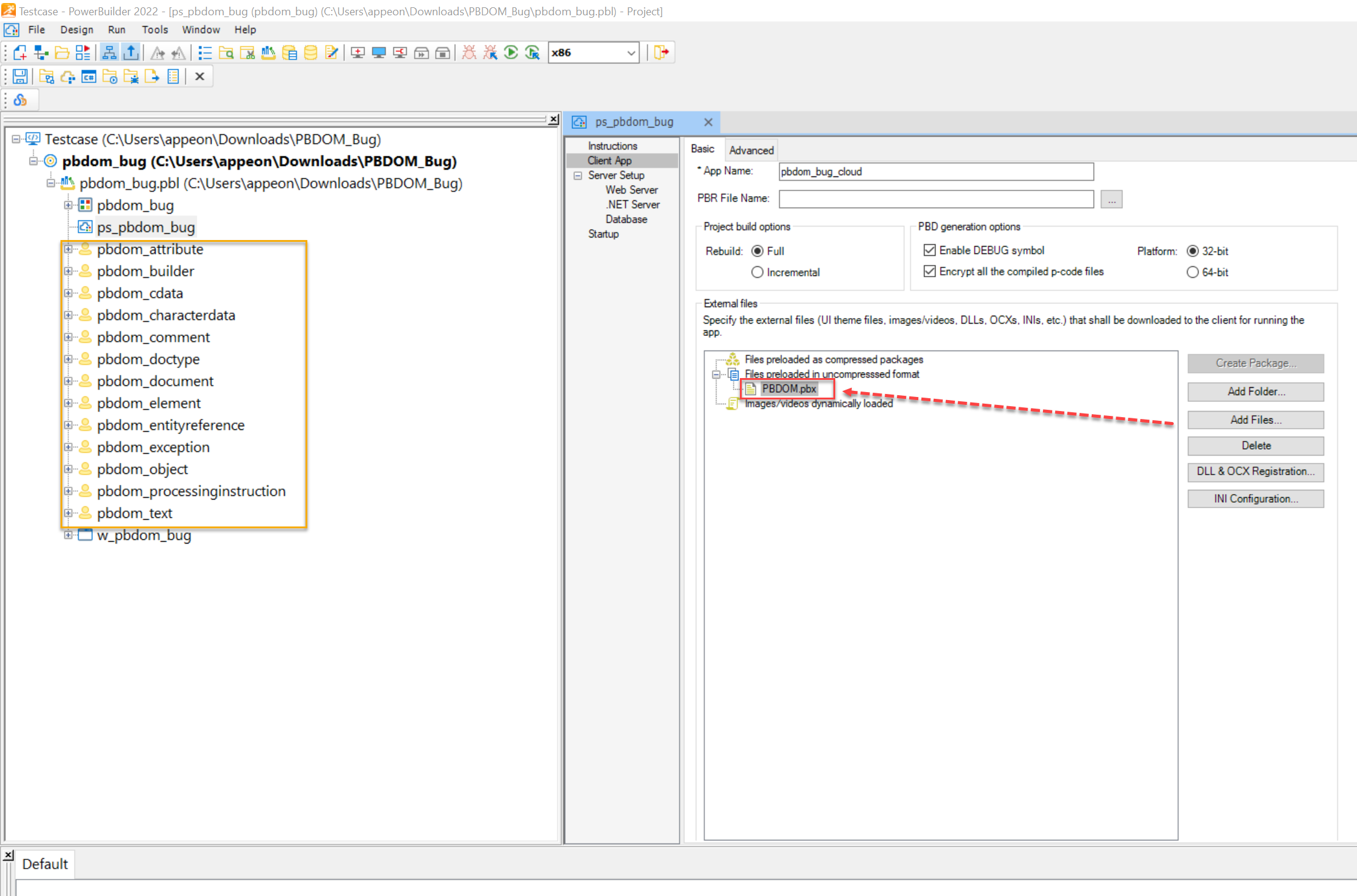 2. Add PBDOM.pbx as external file in the PowerClient project, and then redeploy the project.