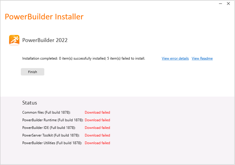 PowerBuilder/InfoMaker Installer shows "Download failed" when downloading files during the installation process or generating the offline installer.