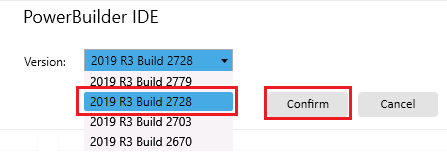 3. In the pop-up window, expand the Version drop-down menu to select 2019 R3 Build 2728 and click the Confirm button.