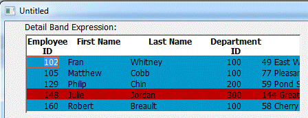 3. The DataWindow with the detail band background color expression now displays as expected.