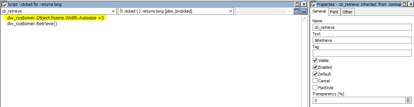 If you now open the Source Code of the DataWindow (Edit Source), you will see that the property was saved.