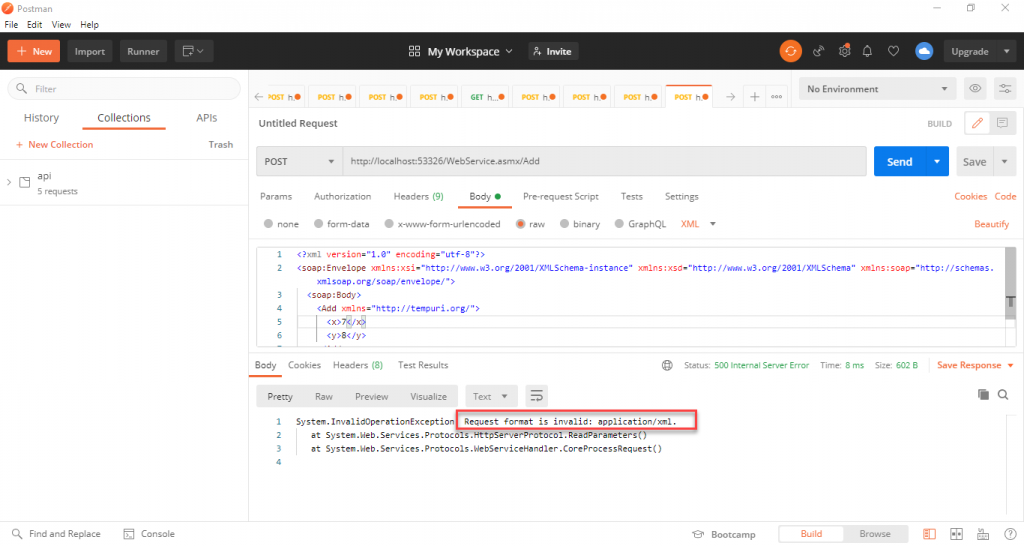 From the result you can see the request format of the current API is different from the one we introduced in the previous section. The Content-Type should be set to application/x-www-form-urlencoded instead of application/xml.