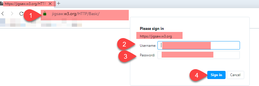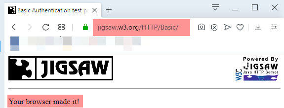 If we input https://jigsaw.w3.org/HTTP/Basic/ in IE and press Enter, then input Username: guest; Password: guest in the pop-up login window.