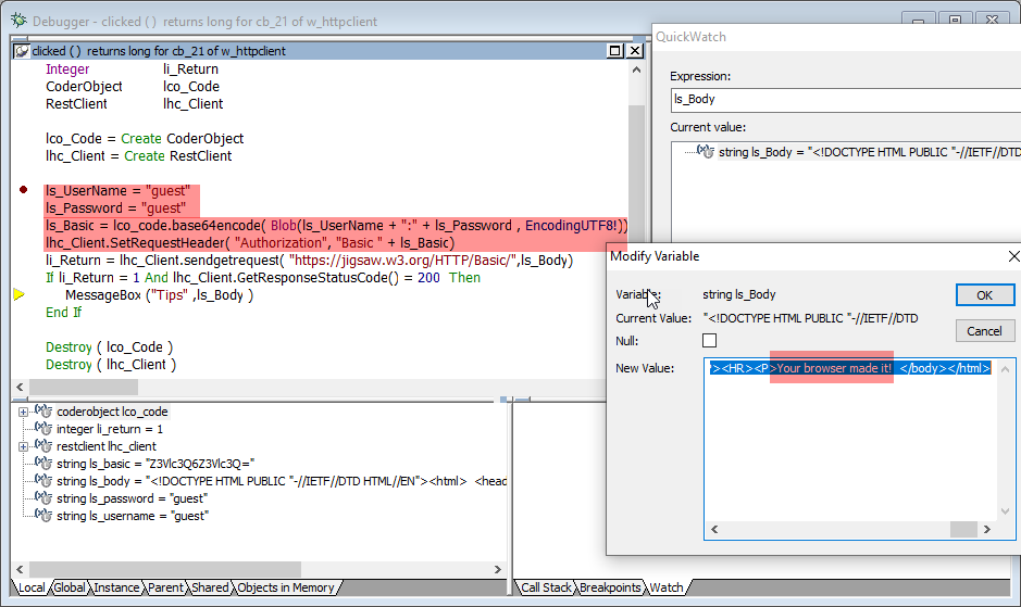 String ls_Basic, ls_UserName, ls_Password, ls_Body