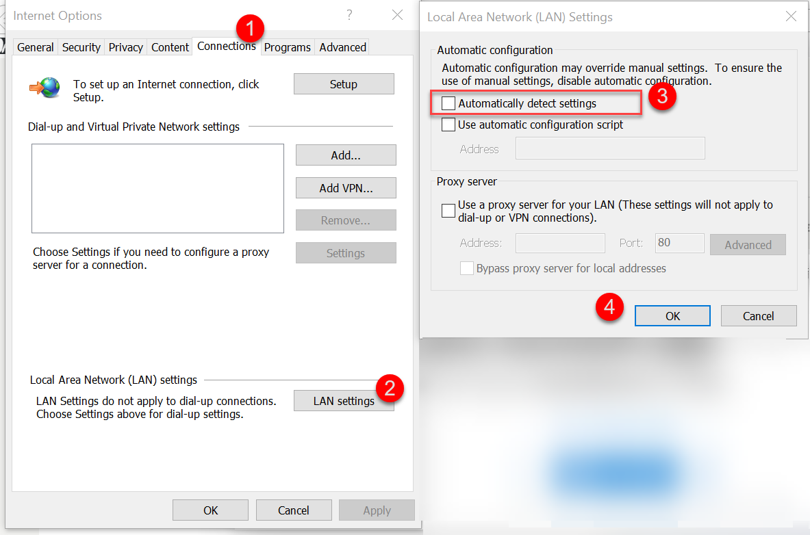 Check the client machine’s LAN Settings, make sure the proxy settings are the same and make sure the "Automatically detect settings" checkbox is unchecked.