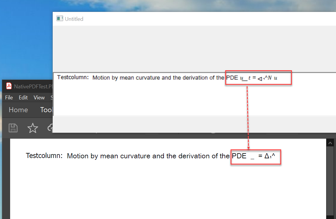 Exporting a PDF file using NativePDF, you may notice the loss of math symbols in "PDE đ˘_đĄ = Îâ^đ đ˘".