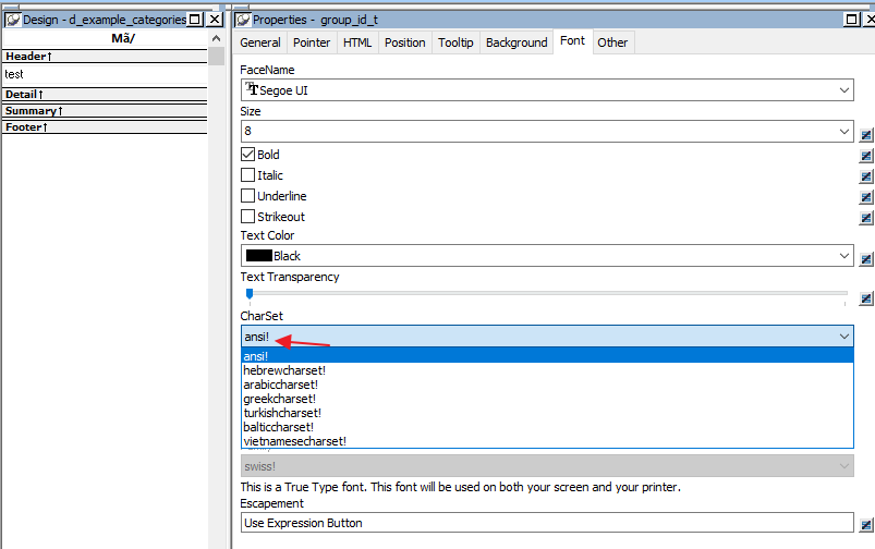 The text object in DataWindow contains special characters but the Charset property is not set correctly.
