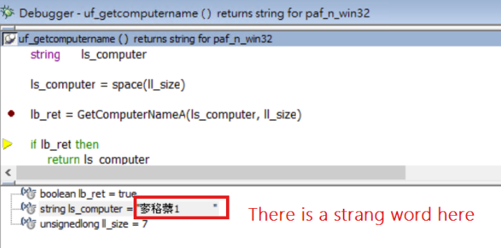 Function boolean GetComputerNameA(ref string lpBuffer, ref ulong nSize) library "kernel32.dll" alias for "GetComputerNameA;Ansi"