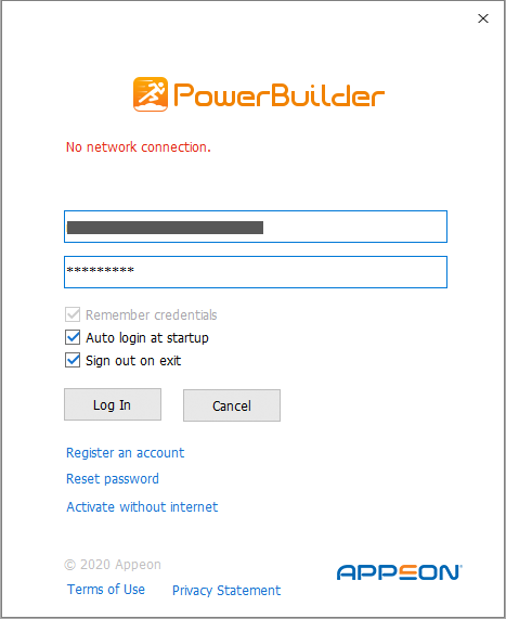 When you activate PowerBuilder/InfoMaker with an online license, it reports the error “No network connection” after you input the correct user credentials.