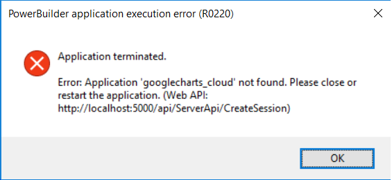 Solution 2: If you want to run an application against Web APIs where the application has not been deployed or if you have deployed more than one application to the same Web APIs solution (which is normally not recommended, because there may be deployment conflicts in the future), check the Applications.json file in the Web APIs solution and make sure the app name matches and is properly configured. (If you store the configurations in the database instead of the file, check the PowerServer_ApplicationConfig table instead of the Applications.json file.)