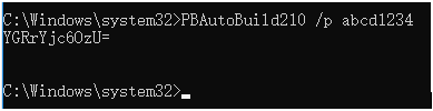 2) The password for VSS is not supported. The VSS login window will be displayed for you to input the password before downloading the source code. The password for SVN or Git must be an encrypted value which is generated from the original password by executing "PBAutoBuild250.exe /p", as shown below.