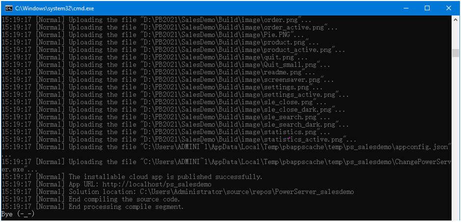 dotnet.exe publish C:\Users\appeon\source\repos\PowerServer_salesdemo\ServerAPIs\ServerAPIs.csproj -c release -o C:\Publish
