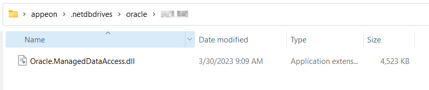 Step 3: Unzip the file, and copy Oracle.ManagedDataAccess.Core.dll from Oracle.ManagedDataAccess.Core.23.6.1\lib\netstandard2.1\ to %USERPROFILE%\.netdbdrives\oracle\23.6.1.