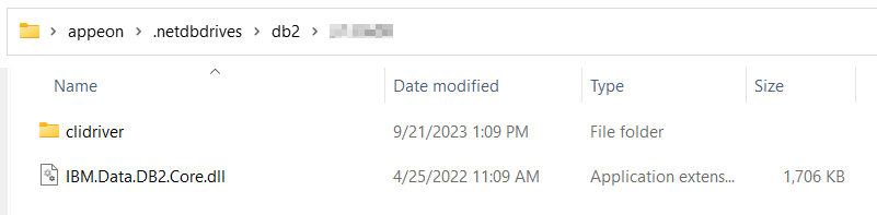 Step 4: Copy the Net.IBM.Data.DB2.dll file from Net.IBM.Data.DB2.8.0.0.300\lib\netstandard2.1\ to %USERPROFILE%\.netdbdrives\informix\8.0.0.300 or %USERPROFILE%\.netdbdrives\db2\8.0.0.300.