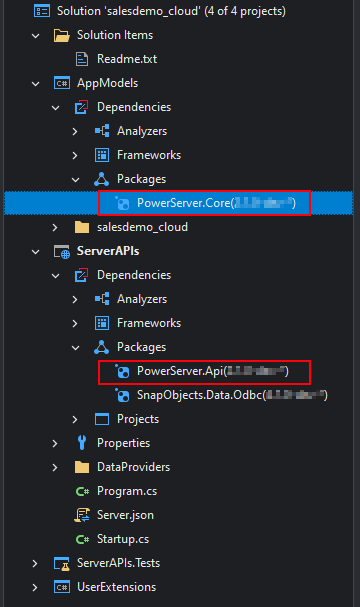 4) After that, double check that PowerServer.Core and PowerServer.Api are installed with the compatible versions now (as shown in the figure below).