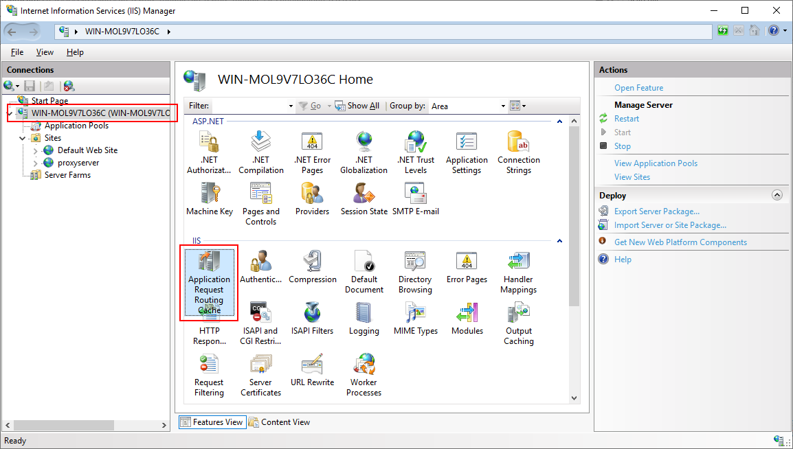 Step 1: Open the IIS manager, select the server in the Connections pane, and then double click Application Request Routing Cache to open the feature.