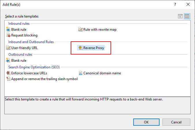 Step 6: In the Add Rule(s) dialog, select Reverse Proxy and click OK.