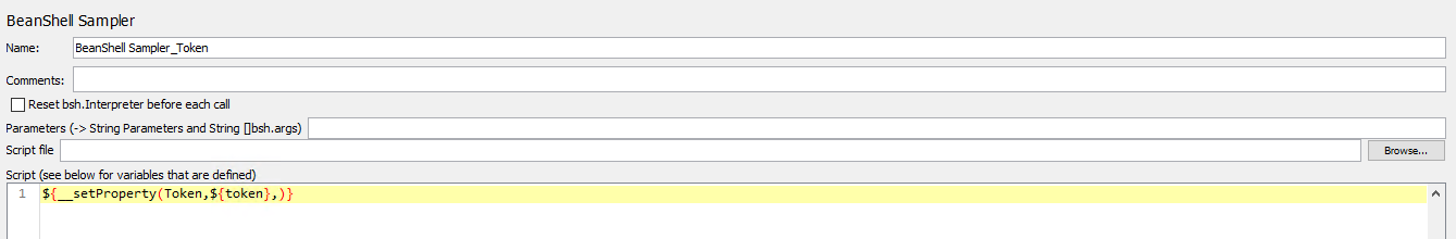 To add a BeanShell Sampler, right click on setUp Thread Group, and then select Add > Sampler > BeanShell Sampler.