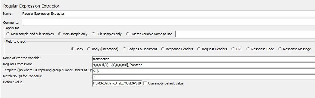 To add a Regular Expression Extractor, right click on the ConnectAndCreateTransaction request and then select Add > Post Processors > Regular Expression Extractor.