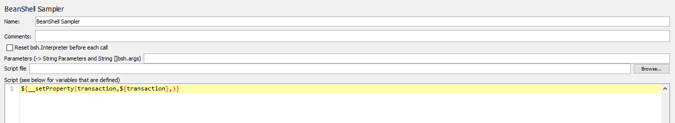 To add a BeanShell Sampler, right click on setUp Thread Group, and then select Add > Sampler > BeanShell Sampler.