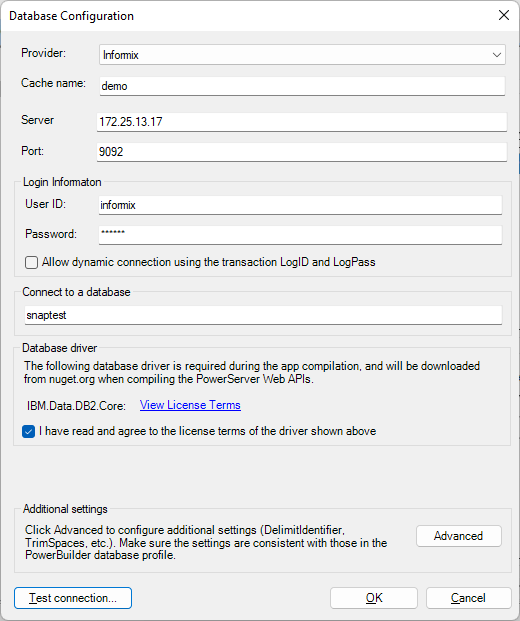 In the Database Configuration dialog box, select Informix from the Provider list.