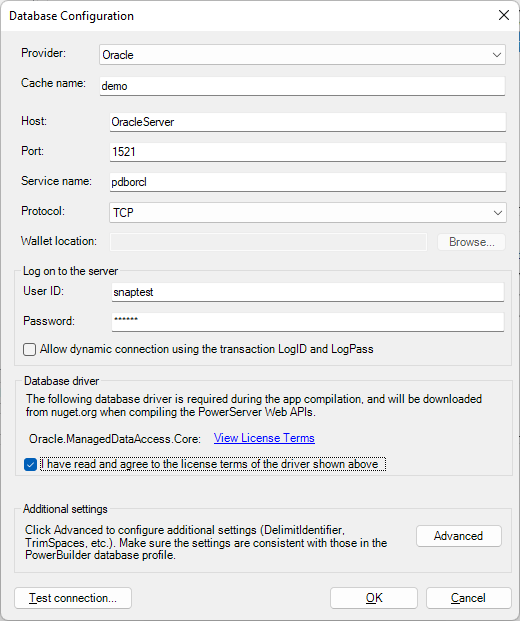 The "Allow dynamic connection using the transaction LogID and LogPass" option allows the application to use the LogID and LogPass property values of the Transaction object to log in to the database server (instead of using the values in the User name and Password fields). For more, refer to Using LogID and LogPass properties.